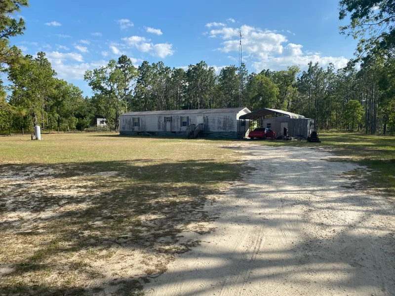 2.11 fully fenced acres in Melrose Landing with 2 metal sheds, 2 car carport and 2/2 single wide mobile home. This package would make a great investment property centrally located between Gainesville and Palatka. Melrose Landing is private airpark community with access to the airfield, runway and use of clubhouse 2 weeks out of the year and has well maintained paved roads. From the property its a short drive to Historic Melrose Florida with great restaurants, live music, shopping, schools and access to fully recreational 6,000 acre Lake Santa Fe.
