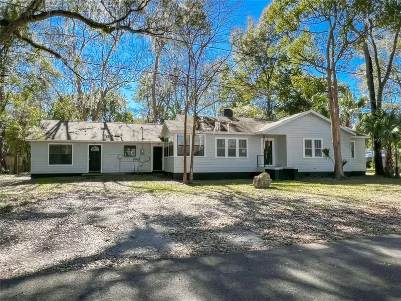 Prepare to be charmed! Nestled on the heart of High Springs, this unique 2,500+ square foot home was once two separate dwellings. The original 3 bedroom/1 bath home has been lovingly updated, yet still maintains its vintage character with hardwood floors, crystal doorknobs and a crystal chandelier in the formal dining room. Enter the home through the living room, which centers around a fireplace just waiting to be enjoyed on cozy winter evenings. The recently remodeled kitchen includes stainless steel appliances and a garden window overlooking the back yard. The main portion of the home is connected via a beautifully lit sunroom and laundry area to a 1 bedroom/1 bath suite. The ancillary portion of this expansive home could be utilized independently, as it has a full kitchen and living area. The bedroom offers substantial closet space and leads into a full bath with jacuzzi tub and lengt...