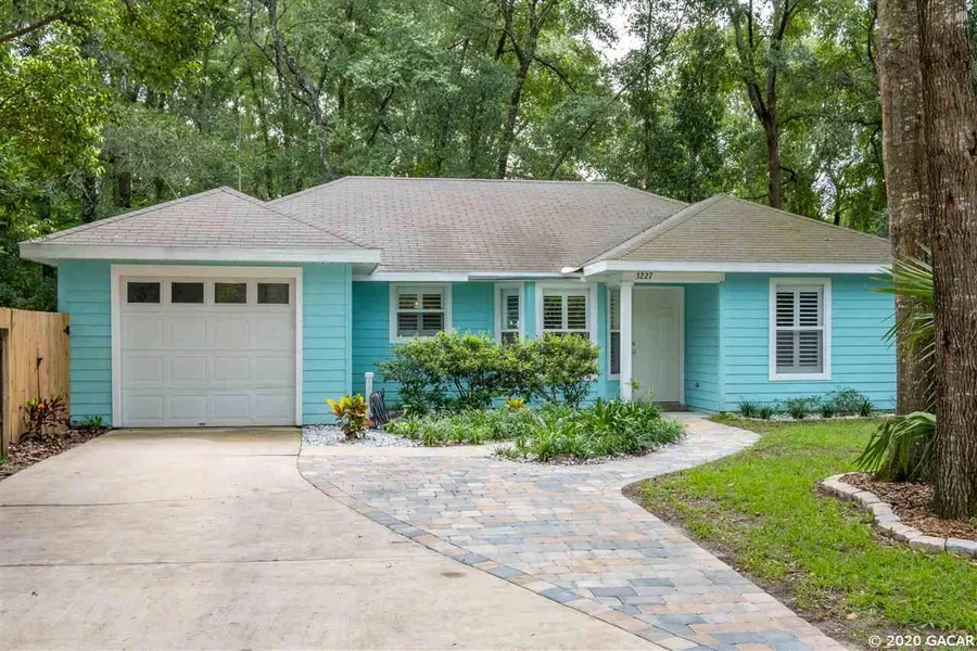 Open House Saturday 8/1 from 12-2. This adorable and cheerful 2 way split home is immaculate and recently updated! The open layout makes this quaint home feel spacious, light and great for entertaining. Walk in the front door and the kitchen and dining room are to your left and the living room is straight ahead, with a sliding glass door leading outside. The tray ceiling stretches the length of the living room and dining area. The shaded backyard is private with brand new sod and undoubtedly where everyone will want to hang out! Recent improvements include a large paver patio in the backyard, paver walkway in the front yard, beautiful luxury vinyl plank flooring, new refrigerator, tree removal as well as other landscaping, added a garbage disposal, crown molding, tasteful painting, plantation shutters, fence extension/replacement in the backyard and a built in banquette with storage for the dining table! The three bedrooms and two bathrooms are a good size and clean. The neighborhood is quiet and well taken care of with close proximity to the University of Florida and Shands, as well as centrally located to everything in Gainesville. At this price point, this home will not last long! Make an appointment to see it today.