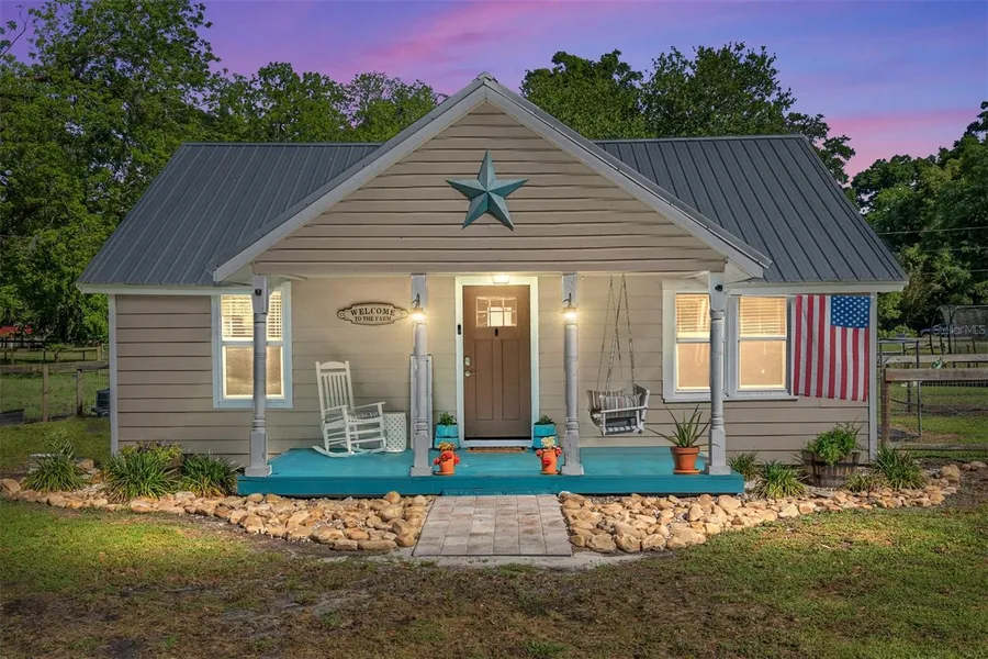 Under contract-accepting backup offers. "Welcome to your own slice of countryside charm! Nestled on a generous corner lot of picturesque land in the heart of Archer, this one-of-a-kind mini hobby farm offers a truly enchanting retreat for those seeking a blend of rural living and recreational pursuits. This charming vintage farmhouse has been nicely updated while keeping its quaint antiquity. As you approach the adorable entrance imagine yourself gently swaying on your front porch swing, soaking in the tranquil surroundings. Enter the home and you will immediately notice the vaulted ceilings, new vinyl plank floors, updated ceiling fans and the beautiful view through your brand new windows. As you continue through the home you are greeted by the stunning remodeled kitchen with ample counter space, gorgeous butcher block counters, stainless steel appliances, brand new cabinets and a nice eat in bar. Step into your primary suite, where soaring vaulted ceilings create an airy and spacious atmosphere flooded with an abundance of natural light. This inviting sanctuary offers a tranquil escape from the hustle and bustle of everyday life, enveloping you in comfort and serenity. The modernized bathroom and second bedroom are around the corner from the primary suite to provide extra privacy. Outside, the possibilities are endless. Whether you're cultivating your own organic garden, enjoying the newly planted crepe myrtles and jane magnolia, or simply enjoying the tranquility of rural life, this property offers ample space to pursue your passions and embrace the natural beauty that surrounds you. This property is completely fenced and includes a well appointed barn/out building with full electric and newly installed fans. UPDATES INCLUDE REMODELED KITCHEN(2023), BATHROOM REMODEL(2023),METAL ROOF(2019), WINDOWS(2023), SEPTIC/DRAIN FIELD(2022),SUBFLOOR(2023),HVAC(2020),WATER HEATER(2024), INTERIOR PAINT(2023) Conveniently located just off Archer Rd 15 min from SW Gainesville shops & Restaurants. A quick 20 min drive to Shands, VA Hospital & UF. Don't miss your chance to own a piece of paradise in the countryside. Whether you're a seasoned mini-farmer or simply seeking a serene retreat, this unique property invites you to experience the magic of rural living. Schedule your private tour today and prepare to be captivated by the allure of this enchanting mini hobby farm.