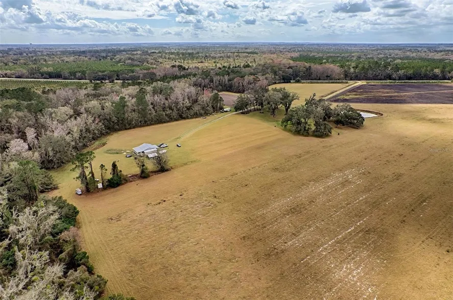 Stunning 77+ acres with majestic granddaddy oaks! This remarkable property offers a picturesque blend of open meadows, a -acre pond, updated 1945 cracker style home and mature oaks as the centerpiece. The land features improved pastures, a hay field, and approximately 1.5 acre garden plot. The remodeled ranch-style home is at the back of the property near a wooded area with a peaceful creek. Recent updates include a new metal roof, country kitchen, family room, screened-in back porch made of reclaimed wood, a covered front porch with tongue and groove ceiling. A convenient utility room with access to the back porch houses the washer and dryer. Primary bedroom offers a walk in closet and built in closet. There are two wells one residential and a commercial-grade 8-inch irrigation well powered by a John Deere diesel motor this property is well-prepared for agricultural use. Additional features include two electric meters with underground service and a 600-amp panel at the main house. There are 3 RV hookups. With approximately 1,185 feet of paved frontage on State Road 121, this prime location offers easy access to Gainesville while maintaining a peaceful, rural lifestyle. The property presents exciting possibilities, including a potential event venue, wedding destination, horse arena, working farm or farm stay with up to eight overnight units. The rich, fertile soil and excellent moisture retention make it ideal for growing fruits and vegetables or pursuing various farm and ranch operations. This property is made up of two parcels being sold together.
