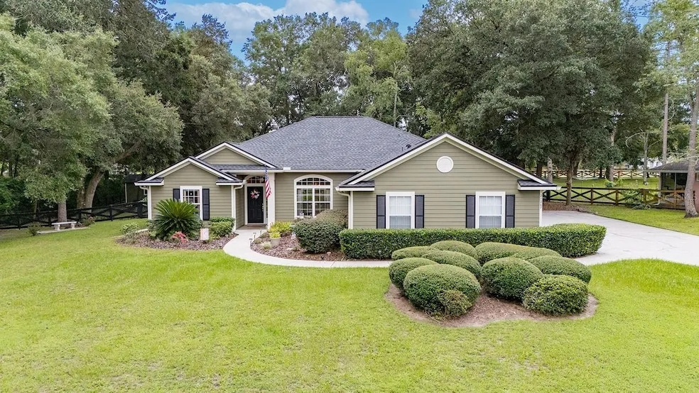 Under contract-accepting backup offers. Welcome to your dream home in the serene community of High Springs! This charming 3-bedroom, 2-bathroom residence sits on a spacious 1-acre lot, offering the perfect blend of comfort and tranquility in a beautiful, sought-after neighborhood with access to top-rated schools. As you step inside, you'll be greeted by a bright and open floor plan with high ceilings and plenty of natural light, making the space feel airy and inviting. The large living area, with a beautiful fireplace, is perfect for relaxing or entertaining, while the well-appointed kitchen boasts modern appliances, ample cabinet space, and a cozy breakfast nook. The master suite is a true retreat, featuring his and her walk-in closets, and an en-suite bathroom that includes a walk-in shower and a jetted jacuzzi tub for ultimate relaxation. The two additional bedrooms are generously sized and share a second full bathroom, perfect for family or guests. Step outside to enjoy the screened-in porch that looks out over the expansive backyard, offering plenty of room for gardening, outdoor activities, or even future expansion. The included 12x16 shed with a loft provides additional storage or could be a perfect workshop. This well-maintained home has a new shingled roof, new HVAC system and new exterior paint. This home is move-in ready. The 1-acre property offers privacy and space, while still being close to all the conveniences of High Springs. With its peaceful setting, beautiful surroundings, and close proximity to nearby parks, springs, and local amenities, this home is the perfect combination of rural living and modern convenience. It s just a short commute to UF, SFCC, and Shands Hospital.
