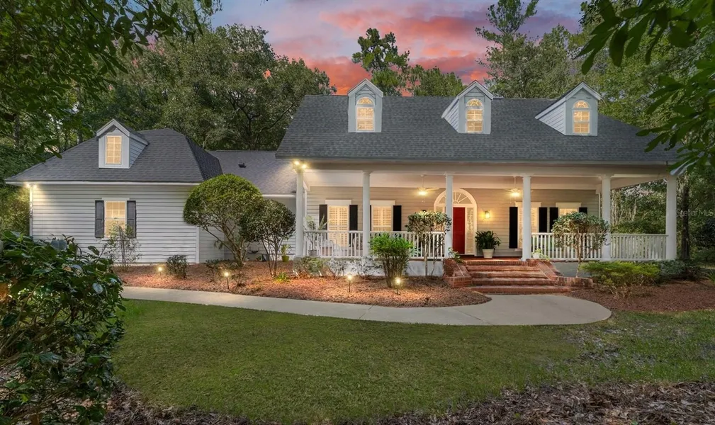 Under contract-accepting backup offers. Asheville meets Gainesville! This storybook Southern charmer sits tucked beneath a canopy of trees, with a 40' front porch that feels like it was made for rocking chairs and long conversations. The large entry welcomes you into a home that balances classic style with everyday comfort. Inside, natural light filters through plantation shutters, highlighting warm wood accents and a thoughtful floor plan (see floor plan in photos) - including a large MUDROOM/drop-zone and walk-in pantry.