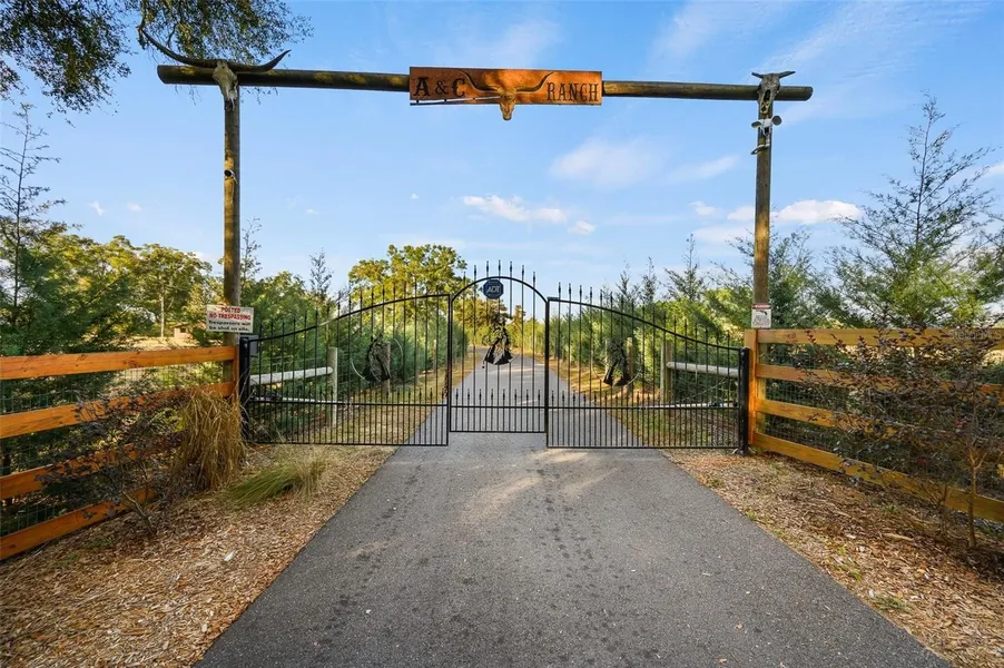Escape to the serenity of country living on this stunning 19.6-acre Farm Retreat Estate sitting on 3 seperate parcels surrounded by mature foliage and natural Florida beauty. A paved circular driveway welcomes you through a wrought iron gated entrance, beautifully lined with