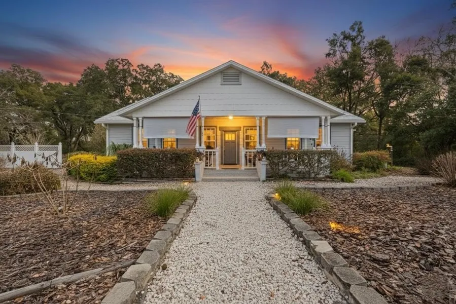 Remodeled 3 BD/2 BA single-family home nestled on 8.26 acres complete with a four-stall horse barn, pole barn and multiple outbuildings. The adjoining corner lot offers even more possibilities, ready to build, sell or enjoy as open land. Originally built in 1945, this solidly constructed home features concrete walls to the foundation with HardiPlank siding. Inside you will find 2,304 SF heated/cooled living space (2,574 SF under roof), showcasing timeless craftmanship. You will find Oak hardwood floors throughout, 9' ceilings with crown molding, ceiling fans, dual pane windows with attractive custom blinds. Den and studio for flexible living or creative space. The home comes fully equipped with modern conveniences: refrigerator, dishwasher, washer/dryer, water filtering system, oven range, and dry bar with a wine cooler as well as a satellite dish. Step outside the French doors to enjoy the sunrise from the private back porch or unwind with the sunset from the tranquil front porch. This property is fully fenced and is surrounded by lush landscaping, fruit trees, and vibrant flowers. Driveway entrances are from paved roads on both sides of the property. There are outdoor lighting and several outbuildings. 10' x 12' garden shed (wood floor). 20' x 25' two-car garage (concrete floor). 18' x 20' workshop (concrete floor). 18' x 20' one-car garage (dirt floor). 36' x 42' pole barn (dirt floor) with 36' x 22' four-stall addition (sandstone floor). The adjoining lot is 4.33 acres (of the 8.26 total acres) and has its own entrance with paved road access. The property is in Alachua County and is less than 9 miles from the beautiful, blue springs in High Springs, 6 miles from Newberry, 9 miles from Alachua and 22 miles from Gainesville. This property truly has it all: a move-in-ready home, extensive powered outbuildings, a second lot, and gorgeous natural surroundings. Ideal for multi-generational living, investment, or simply enjoying the country. A must-see for anyone seeking space, versatility and value!