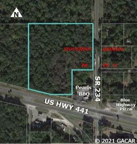 Prime Micanopy and Hwy 441 Commercial acreage ready for development. Property on US HWY 441 and SR 234. This property could be sub-divided and is zoned for many different uses. Great location for small shops or a retail center.