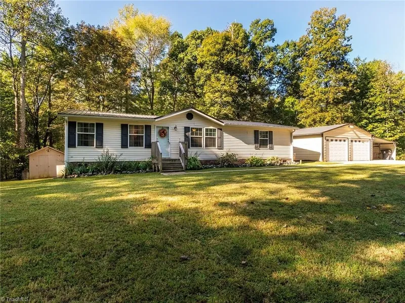A True Country Oasis in Alamance County! Situated on 2.72 private acres, this well-maintained 3BR/2BA home blends comfort and outdoor enjoyment. Features include a new metal roof (2022) and a 48’x10’ covered back porch with mounted TV—perfect for relaxing or entertaining. Enjoy the hot tub in its own covered area and a 24’x25’ detached 2-car garage with mini-split heat pump, pool table, bar, refrigerator, and mounted TV. A covered grilling area, 12’x25’ detached garage, 8’x10’ storage building, extended parking pad, and three carports provide great flexibility. Home includes a water filtration and softener system, and the washer, dryer, refrigerator, and mounted TVs remain. The wooded area includes a deer stand and feeder. A peaceful, private retreat—perfect for outdoor enthusiasts and those with plenty of recreational toys!