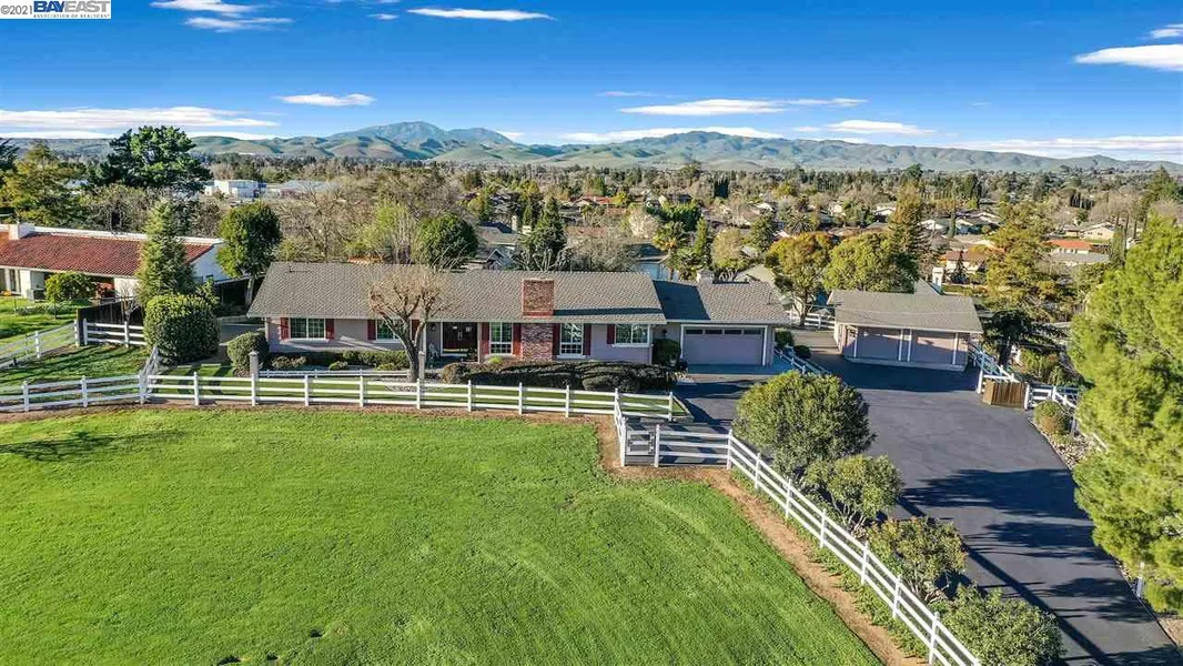 Location, Fabulous Views! Minutes to town and Wineries, live the Country Life, perfect for your own vineyard, a horse or other farm animals (with Permit). Lovely single story home with character, grand living room with historic antique mantel, gracious formal dining room boasts wood flooring repurposed from a barn in Fremont. The spacious kitchen has newer SS applicances, plenty of counter & cabinet space, accented by knotty pine paneling, beamed ceilings. The large master suite includes a private retreat or office, abundant closet space, private bath with large updated shower. Lovely landscaping surrounds the home with garden beds, extensive walkways, covered patio and Views of the surrounding hills, city lights. Plenty of room for the car enthusiast--4+ garages, detached garage with expansive floored upper storage with ladder, side yard access for boat, RV and family toys, plus ADU for guests,family or tenant. Enjoy sunrises and sunsets from this very private hilltop home!