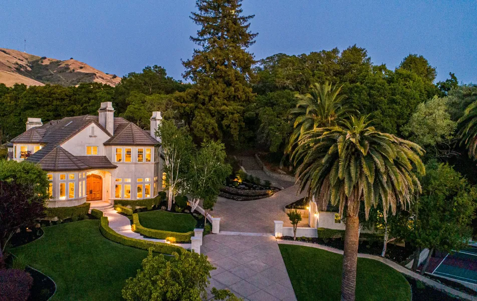 Stunning French country enclave sits on a 1.6-acre lot and presents endless entertainment. Exquisite double door entry leads to a towering foyer with spiral staircase. Enjoy 5717 square feet of open living space with 5 bedrooms, 5 baths, and 2 powder rooms in an exceptional design. Soaring vaulted ceilings with clerestory windows provide ample natural sunlight. Wraparound kitchen offers a generous island with sink and cooktop, abundant counter space with separate sink, double oven, and wine fridge. Picturesque bay views in your master suite, living room, and executive office. Master suite offers a jacuzzi tub and walk-in with double shower heads. Rich amenities throughout include accent lighting, timeless wainscoting, beautiful maple and cherry wood floors, coffered ceilings, and more! Featuring a sparkling pool, spa, sport court, and detailed landscaping. Enjoy the privacy of a coveted, gated community near top rated schools and minutes from 680/880, Tesla, Apple, Facebook, and Google.