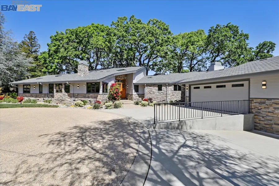 A stunning remodel by a Ruby Hill builder, Hinman Construction, this rarely available one-story home on Pleasanton's west side is in the gated and highly desirable Twelve Oaks community. Enjoy commanding views of Mt. Diablo and downtown Pleasanton from the house and remodeled Trex deck (2022). Relax around the pool with child-safety features of a pool cover and surrounding fence. Huge 4-plus car garage. Practical 234 sf ADU for guests, nanny or office. Elegant entryway with travertine flooring, beautiful hickory and tile flooring throughout, knotty-alder doors and custom cabinetry. Gourmet island kitchen includes Thermador and GE appliances, white pearl quartz and butcher block countertops, breakfast nook and bar, large walk-in pantry. Spacious dining room with impressive gas fireplace. Large great room features gas fireplace faced with crema marfil tile, and built-in shelves and cabinet...