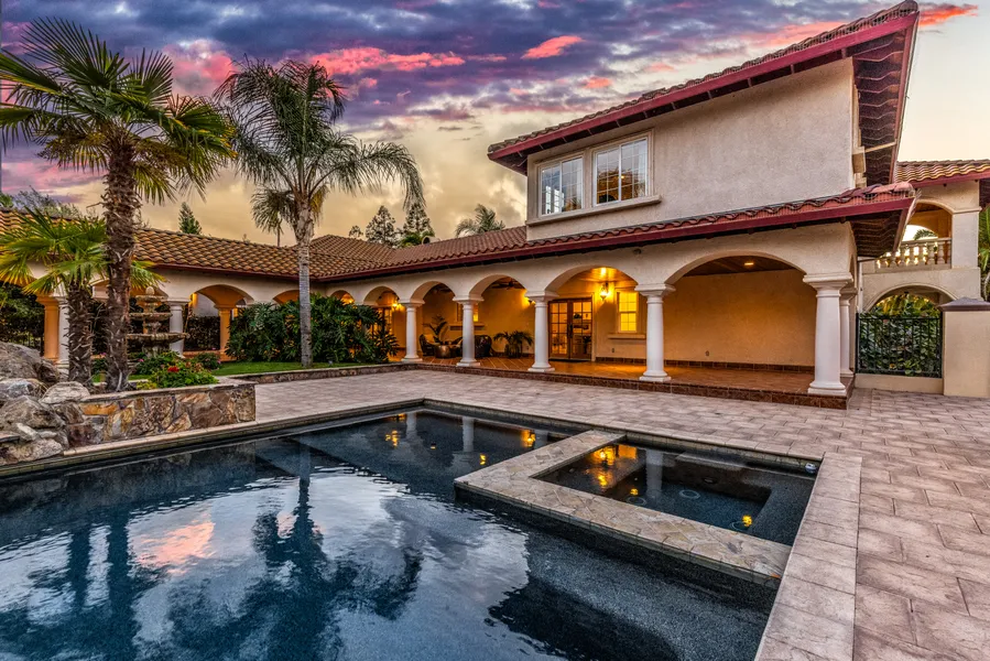 Welcome to Greenville Ranch—a versatile and private 6.62-acre estate offering endless possibilities. Featuring a newly constructed private driveway provides enhanced access and privacy, making it ideal as a serene retreat or a unique business opportunity.. It includes three distinct residences: a beautifully appointed 4986sqft main house with a resort-style yard, featuring a stunning pool with a built-in spa, an expansive patio, and an outdoor kitchen and BBQ area perfect for lounging and entertaining. The inviting pool area, framed by lush landscaping and towering palms, offers a serene escape for relaxation and gatherings. Workout room & Sauna. Additionally, there is a spacious 3,066 sq. ft. rustic cabin-style bunkhouse with a tack room and two garages, and a 1,761 sq. ft. modular home. The property also boasts an 8-stall barn, horse arena, and an agricultural well with water storage, creating a haven for equestrian enthusiasts and agricultural ventures. With avocado trees and Queen Palms, this estate invites you to explore its full potential.