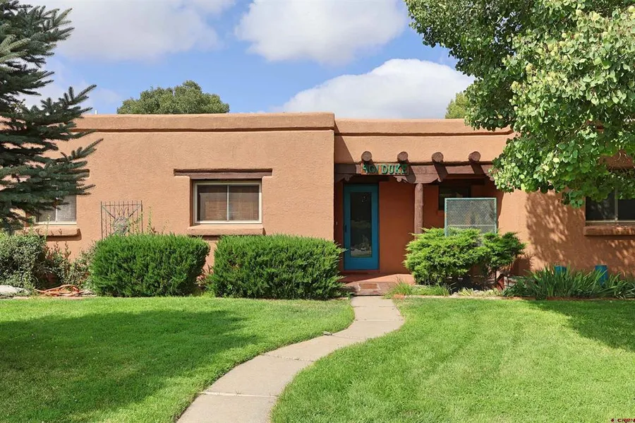 Charming home on a spacious corner lot of nearly 1/3 acre, conveniently located in town near schools and the park. Step into a bright sunroom featuring a built-in planter with a stunning bougainvillea and an orange tree. From there, enter the large family room with tall ceilings accented by log beams and a unique wood-burning fireplace, designed with garage access for easy ash clean-out. The kitchen retains its original charm and includes a newer dishwasher, with an adjacent den/bonus/piano room that houses the washer and dryer. A separate dining room is just off the kitchen, offering a welcoming space for meals and gatherings. The home features three generously sized bedrooms, including a primary suite with a private bath, shower, and direct access to the back patio. Out back, enjoy a covered patio overlooking the expansive xeriscaped yard, complete with a newer vinyl fence, decorative bridge, plum and apricot trees, lilacs, wild roses, and an established garden ready for homegrown produce. Additional features include a spacious attached 2-car garage with built-in workbench, refrigerator/freezer, and stand-up freezer, plus a “solar room” with a new hot water heater. The solar panels, once used to heat the water, could be reconnected with minor repairs. A carport/storage building adds extra convenience in the backyard. The pitched flat roof has been recently resurfaced and maintained annually, and the home’s exterior boasts new stucco within the last year. With its unique features and thoughtful updates, this property is truly a must-see! Sellers are willing to negotiate a Seller Concession at closing for new flooring/updates.