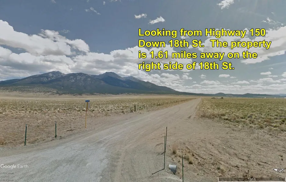 This is a fantastic 5 acre property! Blanca Peak is only 6 1/2 miles away, and the view is incredible. This property is adjacent to thousands of acres of BLM land, literally right across the street. The Rio Grande National Forest is less than 2 miles away. This lot fronts on 18th Street, a nice road that comes straight off of CO Highway 150, only 1.61 miles away. In fact the intersection of Highway 150 and US Highway 160 is only 3 miles away.