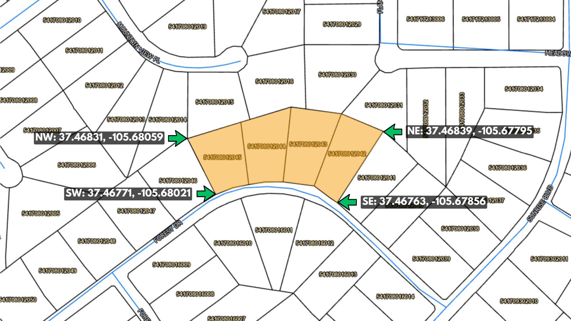 Parcel Number: 541708012042 / 541708012043 / 541708012044 / 541708012045