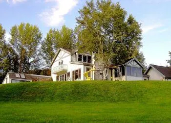 Enter via a birch-lined drive to the auto court entrance of this stellar home on 8.8 acres. Discover an unassumingly elegant 5BR-4BA contemporary converted barn with large, open rooms and great architectural details: original barn beams, walls of windows, riverstone FP, 36 ft. long LR, glass-walled DR, fieldstone-floor foyer, imported-tile gourmet KI, billiards room, MBR-MBA suite w/balcony overlooking sweeping lawns, gazebo, pond and gorgeous mountain views. The 5-room spa extension includes a sunken tiled jacuzzi w/sliding glass doors to the spa deck, a sauna, changing rooms, shower room & 1/2 BA. Finished basement has high ceilings, a gym & 5th BR. 3-car attached garage. Mechanicals include zoned radiant heating & easy 2-step winterizing. This home is perfect for entertaining!