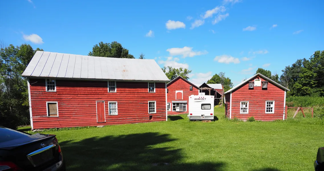 An exact figure on taxes is not available as, without the home, its assessment was recently substantially lowered but new bills have not yet been received. And since the owner is retaining some land (he wants to control a tiny watershed uphill and to the side from what he is selling), significant tax adjustments would need to be made anyhow. Please refer to the enclosed maps to make sense of what I am about to say. Here's how we have priced things. Parcel #1 includes all buildings, has a bit over 3 acres and about 739' of road frontage plus the 450 on Fox Creek. No one can build across from you as you'd own both sides of the road: $82000. If you want more land, Parcel #2 may suit suit you well, you'd get all of #1 + enough additional land so you'd have just over 21 acres, 2 fields in a very good state of tillage (no sprays used) and views to the upper Catskills and Helderbergs along with 1522' of road frontage. There is a dug well on this portion as as well as the 2 wells at the home section. Some of the extra land is lightly forested, but most are open hay meadows: $119000. Note: these prices are for a quick sale only. expect higher if you need lots of time;