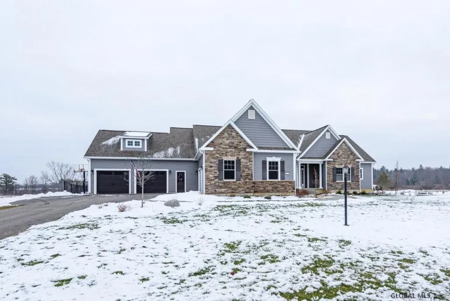 Spectacular 9 month old Ranch house - Seller relocated, your WIN to have a new house without the wait. Beautiful open living space with a gas frpl, kitchen granite island overlooks the living room & dining area with views out back. The formal dining room is currently being used as a home office. One wing of the home has a front bedroom with hall bath access and entry to the master bedroom. Master bedroom has hardwood floors, tray ceiling & access to your private back porch. The master bath has double vanity, soaking tub and double shower. Other wing has 2 more bedrooms and full bath with shower & dbl vanity, mudroom and large laundry room. Finished basement. NEW inground pool w/stamped patio. Borders forever wild conservancy and neighborhood borders the Albany County rail trail.