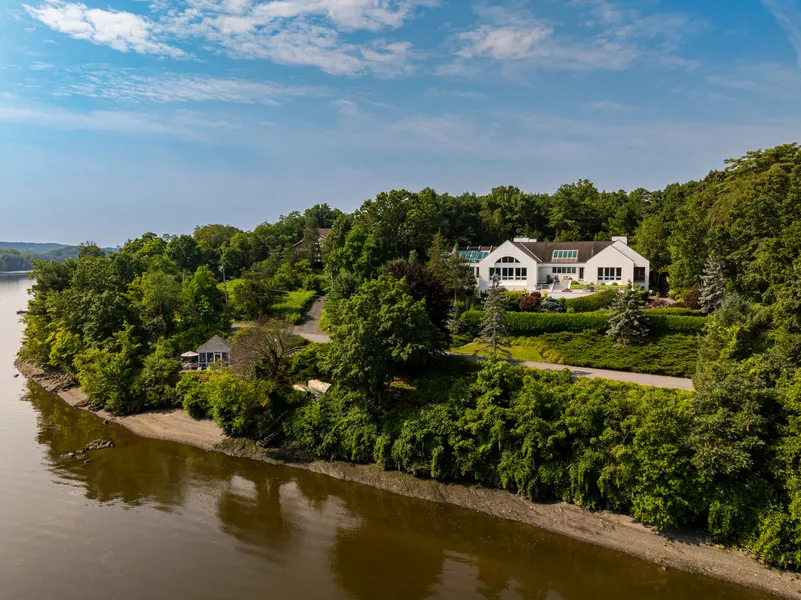 Elegant, contemporary, with a touch of avant-garde. Casablanca is perched atop a hill on historic Van Wies Point, overlooking the Hudson River. The river views are unobstructed, panoramic, and serene. Spacious and airy, Casablanca is an elegant estate that offers modern architecture unrivaled in the greater Capital Region. From all angles the river and state buildings are visible in the skyline. Sit in the riverside gazebo and watch the fish jump, turtles sun, and listen to the birds sing. The fenced grounds feature vibrant flowers, mature trees, and perennials that line the pristine blue stone paths to secret gardens and private hideaways. No estate is complete without an indoor pool, solarium, and greenhouse making home feel like weekend getaway. Offering ample square footage, this home once hosted large elegant parties and charitable events. This expansive home is the total package for entertaining complete with electric gate, circular driveway, privacy, and a convenient location. Travel to the Capitol in fifteen minutes, Kinderhook in twenty five, Upper West Side in two hours and fifteen minutes, and the shops of Glenmont in a quick six minutes. This iconic Hudson River estate is recognized throughout the Capital Region as one of the most unique homes in the area and is now ready for someone new to continue its rich legacy.