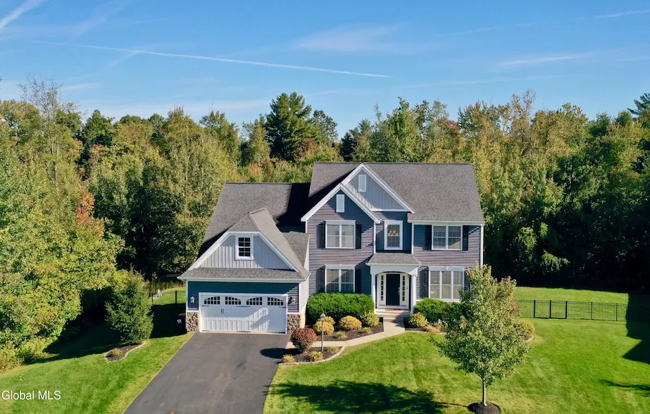 Beautiful 8-year-old Marini-built colonial offering 4 bedrooms, 2.5 baths, and over 4.5 acres of privacy in an established neighborhood. Traditional design with modern touches ensures timeless appeal and lasting value. Spacious main level with open living areas, dining space, and a kitchen that opens to a large deck overlooking the grounds. Walk-out basement includes a finished recreation room with direct access to a fenced backyard, patio, and outdoor entertaining space. Generous primary suite with walk-in closet and bath, plus three additional bedrooms offering flexibility for family, guests, or office space. Enjoy the best of both worldsa ''peaceful setting with mature trees and natural beauty, yet minutes from Albany, shopping, dining, schools, and major highways. Outdoor spaces are ideal for gatherings, relaxation, or quiet enjoyment. The combination of acreage, location, and thoughtful design makes this home stand out in today's market. Move-in ready and built with quality craftsmanship, this property offers lifestyle, convenience, and long-term value for years to come. Open House! Sunday October12 11-1 PM