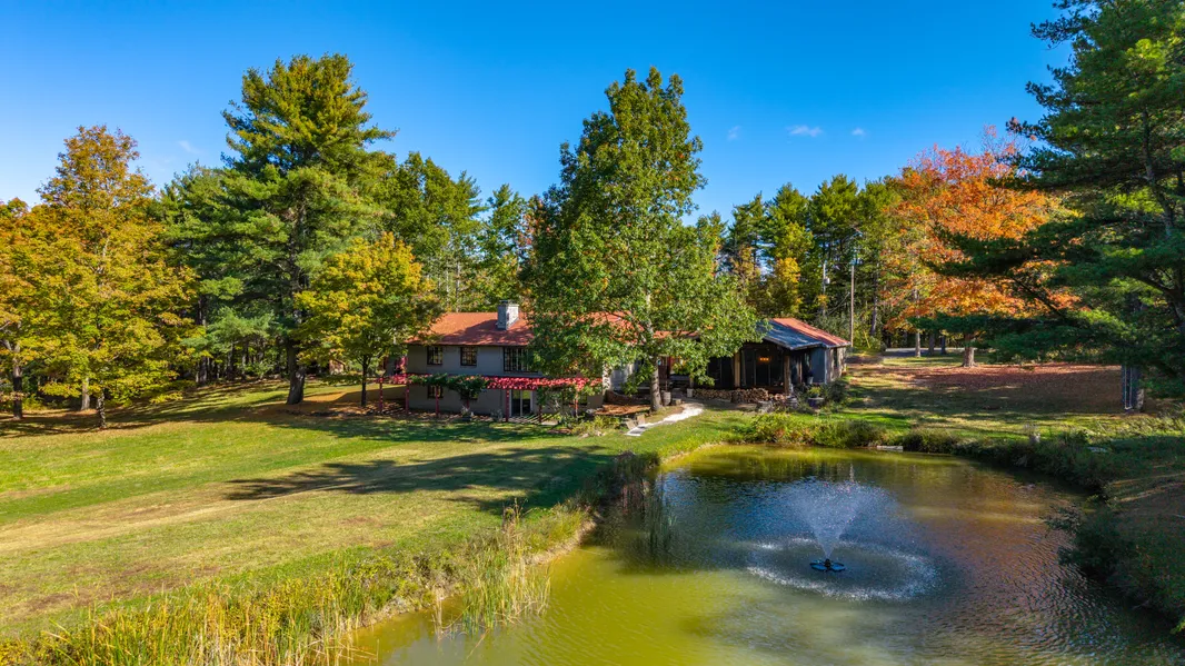 Designed by a Danish American engineer inspired by his experiences during World War II, this remarkable four bedroom, two bath retreat is a masterwork of balance, intention, and enduring craftsmanship. Every element was created to harmonize with its natural surroundings, from the reclaimed materials to the lush landscaping that features native plantings, stone and slate walkways, and a tranquil koi pond, home to Karl, its longtime resident. Set on 6.2 private acres, the property welcomes you with a large horseshoe driveway framed by mature trees and natural stonework. The outdoor spaces are designed for reflection and connection, with stone benches, an herb garden, and a wisteria covered pergola that create intimate places to unwind and enjoy the landscape. Inside, oak hardwood floors, two wood burning fireplaces, and a remodeled kitchen with reclaimed wood cabinetry and quartz counters showcase the home's refined character. Every detail reflects quality and purpose, from the seamless flow of the living areas to the thoughtful reuse of materials. The historic three season room is a true architectural treasure, with large reclaimed beams originally from Thomas Edison's workshop in Schenectady. Perfect for dining al fresco or savoring quiet mornings overlooking the pond and small locust grove, this space captures the essence of timeless comfort. Recent updates, including a four year old roof, one year natural gas old boiler, new copper and central air to ensure efficiency and peace of mind. A two car garage completes this extraordinary offering. The lower level adds both function and flexibility, featuring a spacious laundry room with abundant storage and a dedicated workshop area ideal for projects or creative pursuits. A rare balance of history, design, and serenity, 37 Swift Road is a home that lives in harmony with nature, crafted for those who value authenticity, sustainability, and the art of living beautifully.