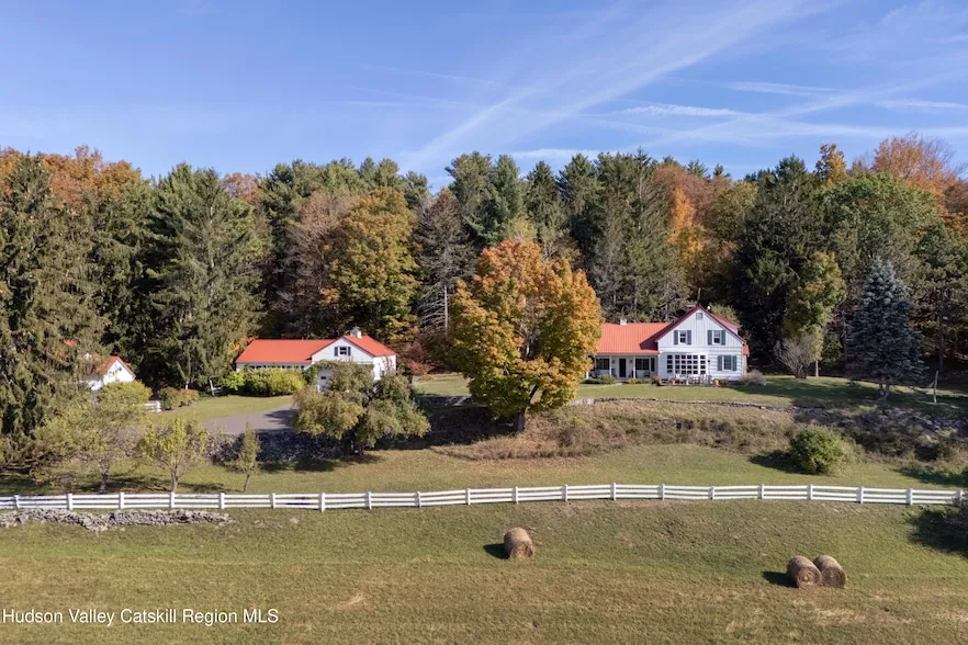 Mountain-View Farmhouse Compound on 60 Magical Acres Welcome to 76 Smith Road, a countryside retreat where historic charm meets some of the most beautiful mountain views in the region. Set on 60 private acres, it's a full world of its own with a classic farmhouse, a barn, studio space with guest suite, and a charming one-bedroom cottage tucked nearby. A long, tree-lined driveway creates a dramatic sense of arrival, opening to rolling fields, stone walls, mature maples, overlooking a serene spring-fed half-acre pond, all set against a breathtaking backdrop of wide-open sky and panoramic views. The main house dates back to the 1800s and has been lovingly maintained to preserve its character while offering comfortable modern living. Inside, original hand-hewn beams, hardwood floors, and period details add warmth and authenticity throughout. The living room centers around a cozy wood stove set into a brick hearth, a perfect spot for relaxing or gathering with company. The kitchen radiates country charm with its vintage stove, butcher block counters, and farmhouse cabinetry, while a sunny breakfast nook invites slow mornings overlooking the gardens. Just off the living room is a bright central dining and sitting area, anchored by a stunning floor to ceiling window that frames sweeping mountain views, the ideal setting for entertaining, or simply relaxing with a book and taking in the scenery. Nearby, a smaller first-floor room, currently used as a bedroom, offers flexibility for a home office, library, or guest room. A full bath completes the main level for convenience. Upstairs, three spacious bedrooms offer peaceful treetop vistas and abundant natural light, providing comfortable private space for family or guests. A second full bath can be found on this level. With its southern exposure, the house is flooded with sunlight from dawn to dusk, with nearly every window offering a postcard view of mountains or meadows. Step outside onto the front rocking chair porch or stone patio, ideal for taking in the unobstructed sunrises and sunsets that paint the entire property in gold. Beyond the main residence, a separate studio building offers a spacious 600 sq ft pine-lined recreation room with soaring ceilings, perfect for a game room, art studio, yoga space, or home office - plus an ensuite bedroom upstairs for guests or extended stays. The classic two-story barn provides two horse stalls, equipment storage, and a light-filled studio space, ready for a workshop or studio.. And just down the road, The Green Cottage offers a charming 1-bedroom, 1-bath guest retreat with its own private setting, ideal for visitors or rental potential. The grounds invite endless exploration with its meadows for gardening or animals, open sky for stargazing, and level lawn areas ready for a pool, orchards, or events. Two additional parcels are also available for purchase separately, allowing for expanded privacy, family compound potential, or future development. Located a little over two hours from NYC, 5 minutes to the charming town of Oak Hill, and 20 minutes to the ski slopes at Windham, this property offers a rare blend of history, privacy, and truly unforgettable views that make you never want to leave.