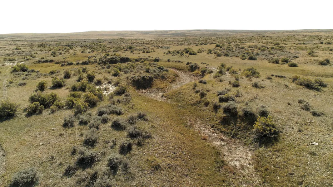 This parcel butts up to a working cattle ranch to the East and provides privacy and solitude. The seasonal pond provides water in early spring and the draw and rise of the land provide the potential for water collection. The eastern portion contains a slight slope providing windbreak. Magnificent views of the Laramie Peak. This property has unlimited potential for off-the-grid living. The eastern boundary has a fence. A road borders the west and south portions of the tract. An abundance of wildlife including antelope, swift fox, prairie dogs, badgers, hawks, and golden eagles. NO owner financing is available.