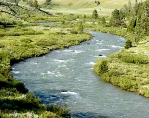 The claim location monument has a 4 foot wooden post near the river, with copy of Location Notice attached, as required by the State of Wyoming.
