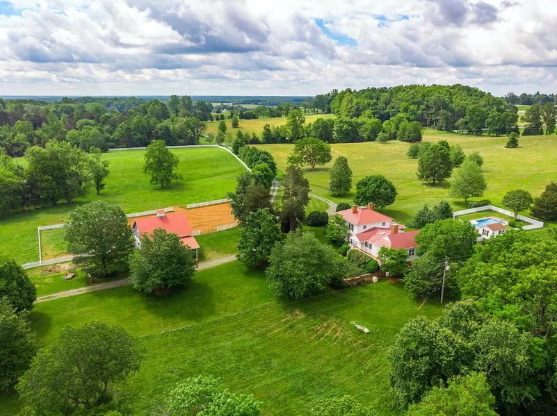 With blazing fast 1gbps internet speed available, Sunnyside Farm is a rare 111 Acre Retreat in the Keswick Hunt just outside Charlottesville in the Southwest Mountains Rural Historic District. The 1907 FourSquare Country Farm House was renovated and expanded under the supervision of Nationally Recognized Historic Preservation Architect Paul Hardin Kapp in 1994. True weatherboard siding is capped with a metal roof. There is simplicity and grace in a plan that includes a large reception room with twin fireplaces, a first floor master suite with sitting room and fireplace, a spacious eat-in country kitchen with skylight and fireplace and more. Here, the essence of country living is unreservedly captured and includes deep, open and screened porches. During the renovation all electrical and plumbing systems were replaced and a geothermal HVAC system was installed. The water-cooled furnace is new as of 2019. A 8.5KW Generator ensures continuity of essential services in the event of a power loss. The grounds of mature landscaping feature 100+ year old boxwood and beautiful gardens including those around the 20x40 fenced pool (new vinyl liner in 2019). The center aisle 3 stall stable has two 12~ deep shed rows for run-in & equipment storage, a feed/tack room, a whelping kennel (hot and cold water) and hay storage above with interior staircase. All stalls have a rear dutch door exit to adjoining paddock. Nearby is a large wood-working shop/garage that has two large work areas, a large storage area with shelves and a full bath making this structure adaptable to other uses. The Shop is heated and cooled by a separate heat pump. For decades the farm has produced bounteous quality hay for equestrian enthusiasts. There are broad mountain views, two streams and a spring-fed pond. Historic, private, scenic - Sunnyside Farm is the consummate country property.