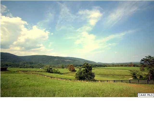 Western Albemarle estate parcel at the base of the Blue Ridge Mountains with several barns and a kennel. Mostly open land with panoramic mountain views. Wonderful building site with great views. Includes a 5-stall barn w/wash bay and shop, 9-stall barn w/ 2 wash bays and BA, kennel, Cottage with 1 bedroom & 1 bath, block barn, run-ins, outdoor riding arena and 5 paddocks. Vineyard potential.