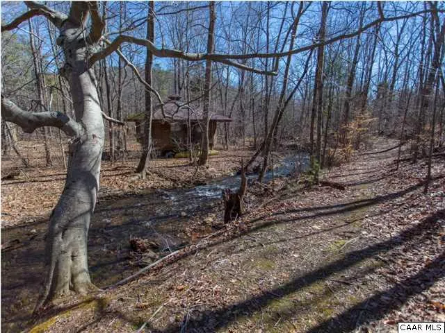 Picturesque 15 acres with expansive creek frontage. A winding, bubbling brook traverses through this wooded lot complete with bridge. Extreme privacy in the Meriwether Lewis school district. Neighboring properties are large country farms and estates. The structure currently on the property is unfinished but would make a great cabin, guest house or studio. A perfect building site looking over the water is on the adjacent side of the creek. A unique parcel close to Free Union in Western Albemarle.