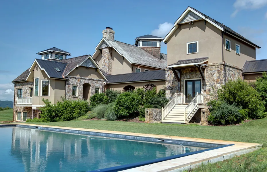 In a beautiful elevated setting of 114 acres with expansive mountain views, this residence is an expansive English country manor replete with all modern conveniences. From the moment you enter the spacious, timbered foyer you know there is something special about this home. The first floor is comprised of the foyer, walnut library, dining room, music room, gourmet kitchen and adjoining family room, half bath, laundry room, and amazing master suite. The second floor includes 4 additional bedrooms, and a unique widows walk. Each bedroom has its own en suite bath. The lower level includes a media room, office, storage and room to grow. An Infinity pool, pool house/guest apartment and 4 car detached garage complete the offering.