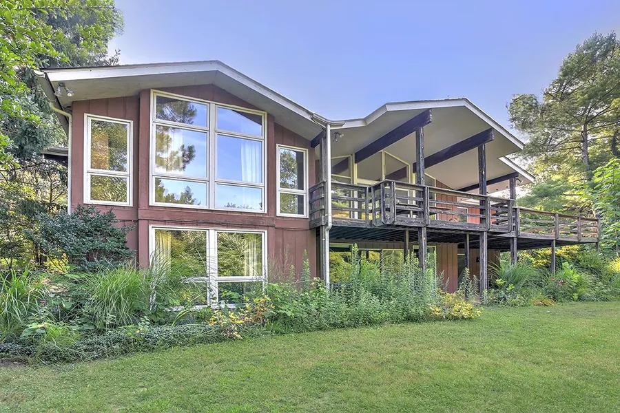 Comfortable mid-century modern of Acorn design with vaulted ceilings, exposed beams, two wood-burning fireplaces, and walls of windows. Many updates including a custom kitchen and a main level master suite addition by Shelter Associates. On the terrace level, three bedrooms, one ensuite, a third full bathroom, and a home office surround the family room bathed in natural light. Outdoor living spaces include wraparound decks and patios accessible from throughout the house. Three-bay detached garage and two stall barn. The nine open acres are fully fenced for horses. This is a fine small farm in the western Albemarle countryside but less than 15 minutes to UVA, downtown, Stonefield, and Crozet.