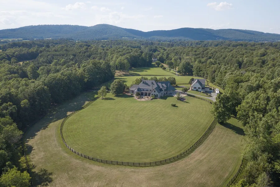 Arcourt is actively for sale, showings and offers are encouraged. Nestled away on 22 private acres in Keswick Hunt Country, this French-inspired equestrian estate is built with quarried natural stone and superb quality construction. Boasting a beautifully finished 5,900+ s.f., this property comes completely fenced for horses, including an equally stunning carriage house with 3 stall barn, 1,100 s.f. apartment, and 6 car garage below. Interior of the residence features an open floor plan with spacious rooms, high ceilings, large windows, & heated stone floors throughout. The main level includes a master suite, a second bedroom/study with two more bedrooms and two baths on the second level. Enjoy Blue Ridge Mountain views from the covered veranda with stone fireplace, sweeping green lawns, and much more.