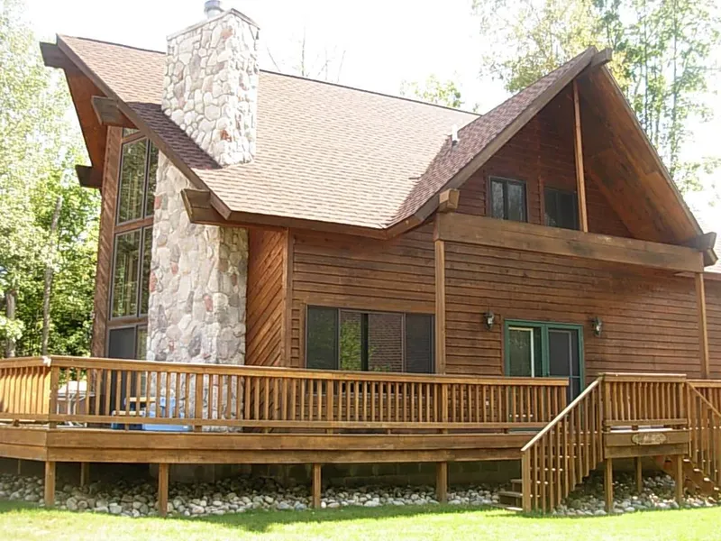 Waterfront property with 12.78 acres and 324.39 Ft of sandy beach. This Beautiful Custom Home has 3 bedrooms, 2 baths, real hardwood floors, spectacular windows with the superior view of Jewel Lake. The wrap-around deck is a bonus and convenience all in great shape. The peaceful quiet neighborhood allows serenity of a vacation, and also can be a year round home. The home comes turn key, already for you to enjoy. Two bedroom with a bath on the upper level. Master bedroom with bath and laundry room, all on the main. The cathedral ceiling with the pine interior with ceiling fans, sliding glass doors to the deck, the fireplace has stone all the way to ceiling. The de attached garage with cement floors, and loft upstairs, is awesome storage space, and has a window view. The lake is great for pan fishing, walleye reef, pike marsh, bluegill etc. Beautiful island on Jewel lake to enjoy, this all...