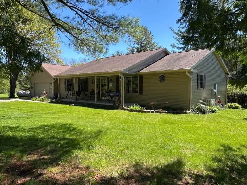 Country Charm Meets Modern Comfort! 3-Bedroom Ranch on 5 Acres! Enjoy privacy, comfort, and space in this beautifully maintained 3-bed, 2-bath ranch on 5 landscaped acres. Features include a welcoming layout, covered front porch, large entertaining deck, and full 11-block basement with endless potential. Stay comfortable year-round with a mini split A/C system, outdoor wood boiler, and Generac generator. Extras like leaf-guard gutters, main floor laundry, and an attached 2-car garage add convenience. Whether relaxing or entertaining, this home offers the perfect blend of country living and modern ease. Square footage is approximate and should be verified by the buyer or buyer's agent.