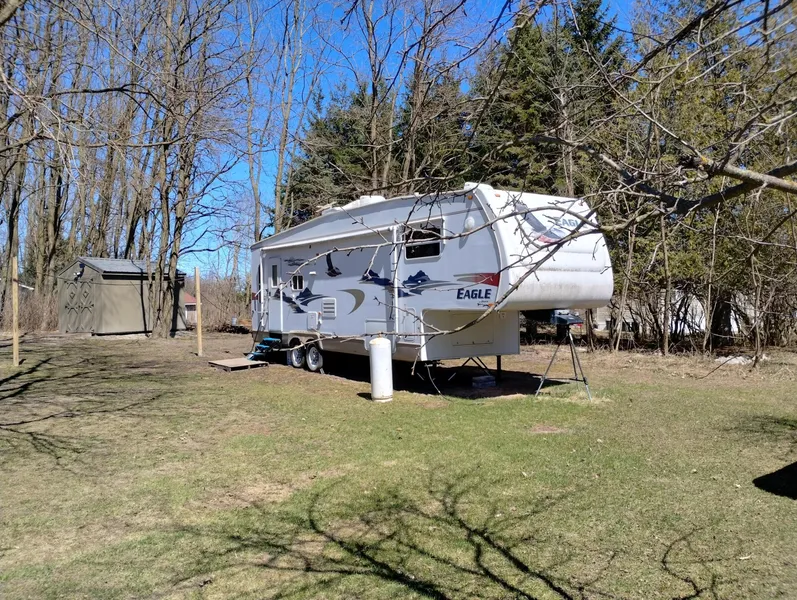 Well groomed two lots on a corner, This property offers on site electric, a driveway, a shed, firepit, and a 2006 Eagle fifth wheel with TWO slideouts. This would make a wonderful retreat or vacation property. Appointment only.
