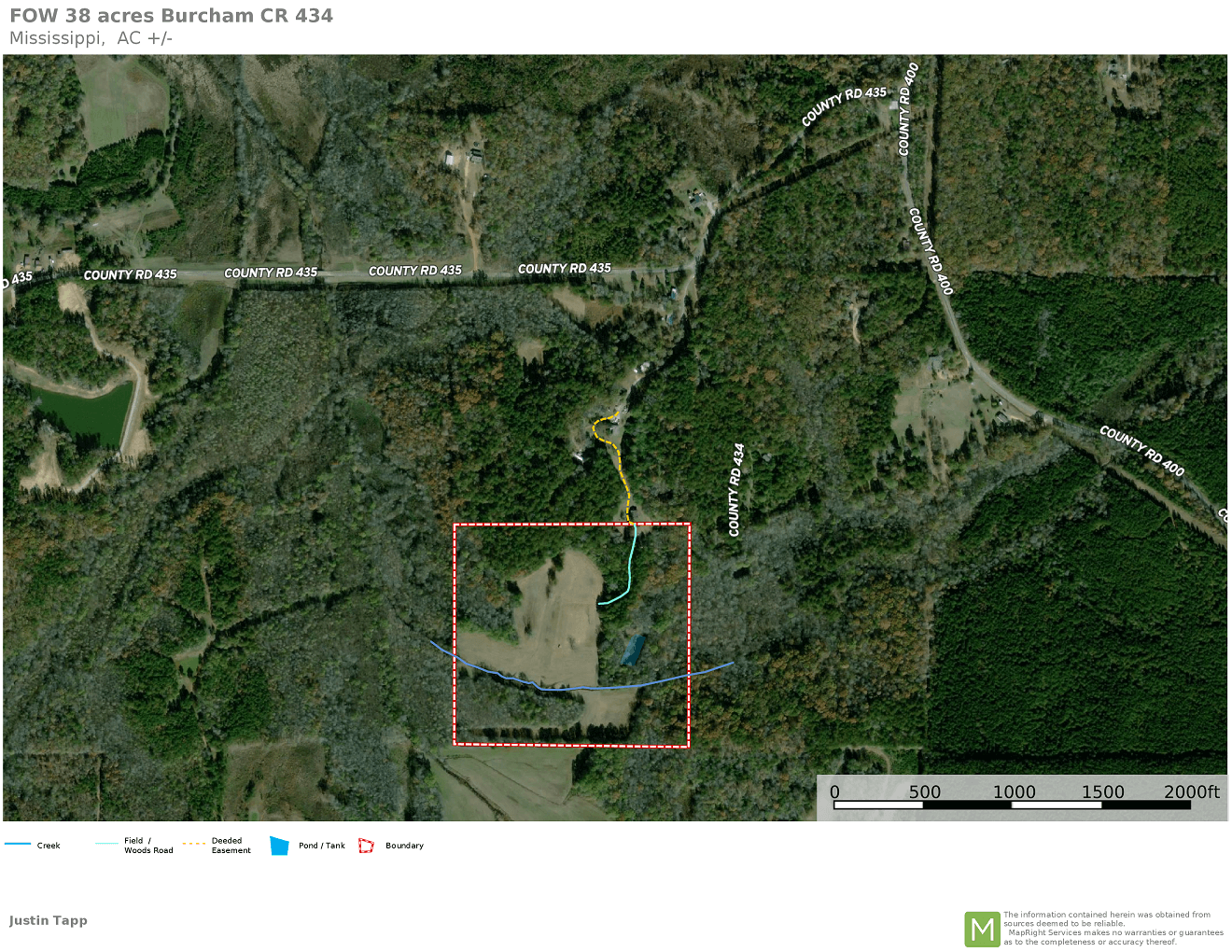 ** UNDER CONTRACT ** PENDING SALE ** A GOURGEOUS +/-38.83 surveyed acres that consists of a mixture of valuable, mature, mixed timber and open fields! Featuring a year-round creek that transects the property and a small pond hidden in the woods. A perpetual, deeded easement follows an existing woods road that leads from the dead end of CR 434 to the northern boundary or the Subject Property for more than adequate access! A fresh land survey is available for review upon request.