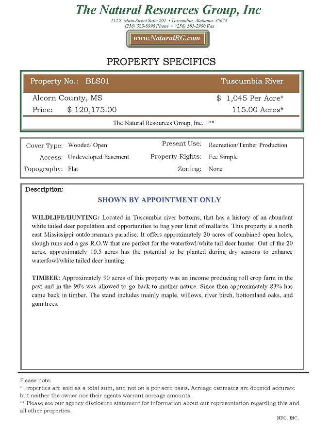 Research Parcel InformationFor driving directions, go to our website, naturalrg.com/tracts/BLS01/BLS01.html and click on "Google Directions".