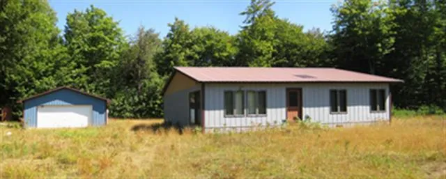 This ranch-style camp is located on 30 acres just west of the Stella Lake boat launch in a great hunting area. See deer, turkeys, bear, etc on your own land. The cabin is large and open and bright - and comfortable. (Who says hunting camps must be dark and damp and dreary?) There is a propane furnace and a free standing fireplace to keep it warm - and lots of insulation to keep the warmth inside! The cabin only lacks a septic system and some finishing carpentry in the back room. The steel pole garage has a cement floor, so it's easy to store all your toys. Furnishings are negotiable.