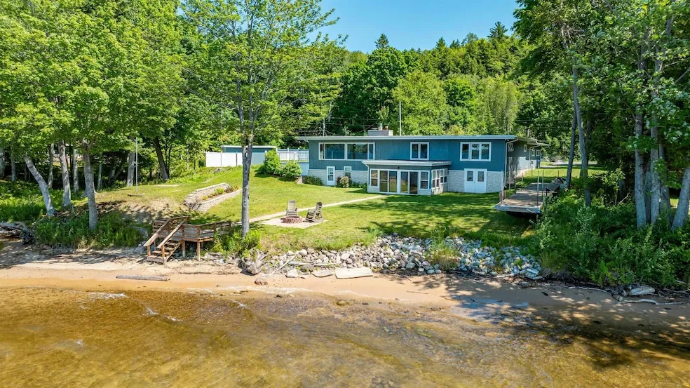Here we have a Lake Superior home with sand beach frontage located on Munising Bay. The views are amazing! The primary living space is a single level and there's a walkout basement offering additional finished living areas. Upstairs there's an open concept living room with a dining area and an adjacent kitchen. The living room has large picture windows facing the lake with unobstructed views, a sliding glass door with access to the deck with privacy surround, and an attractive natural gas fireplace. The dining area has plenty of space for a large dining table sharing views out the living room windows. The kitchen has a built-in stove top and a built-in oven in the backside of the living room fireplace. This main level also has two bedrooms, two full baths, and a spacious main level laundry room. Both bedrooms have views of Lake Superior and the primary contains one of the full ba...