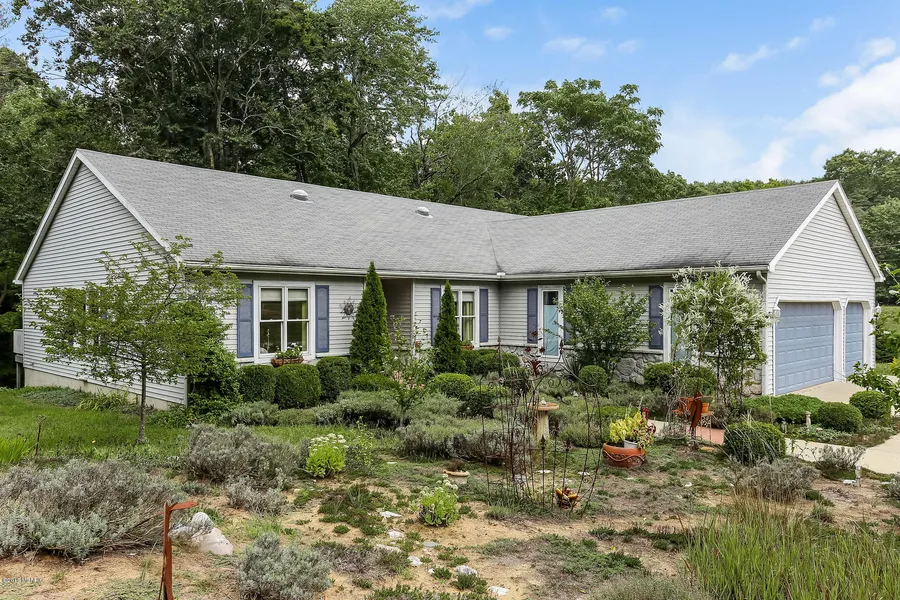 World renowned artist's home on a private wooded setting. This home features 5 bedrooms and 2 full baths. Hardwood floors throughout. Belgium porcelain wood burner in the living room keeps things cozy on cold nights. The kitchen boasts plenty of cabinets, butcher block countertops and a farm house sink with a window overlooking the wooded ravine and flowing creek to enjoy nature and wildlife. The spacious master ensuite has a slider to a private deck and master bath with walk-in closet. The large deck is perfect for entertaining and relaxing. The natural gas furnace and hot water heater are both energy efficient. Gorgeous gardens grace the exterior of the home along with apple, pear, peach and cherry fruit trees. A three stall garage is perfect for cars, toys and storage. There's a full, daylight basement ready to be finished for more living space. Two parcels included which total 2.38 acres. Parcel #03-14-007-022-00 and #03-14-007-022-20.
