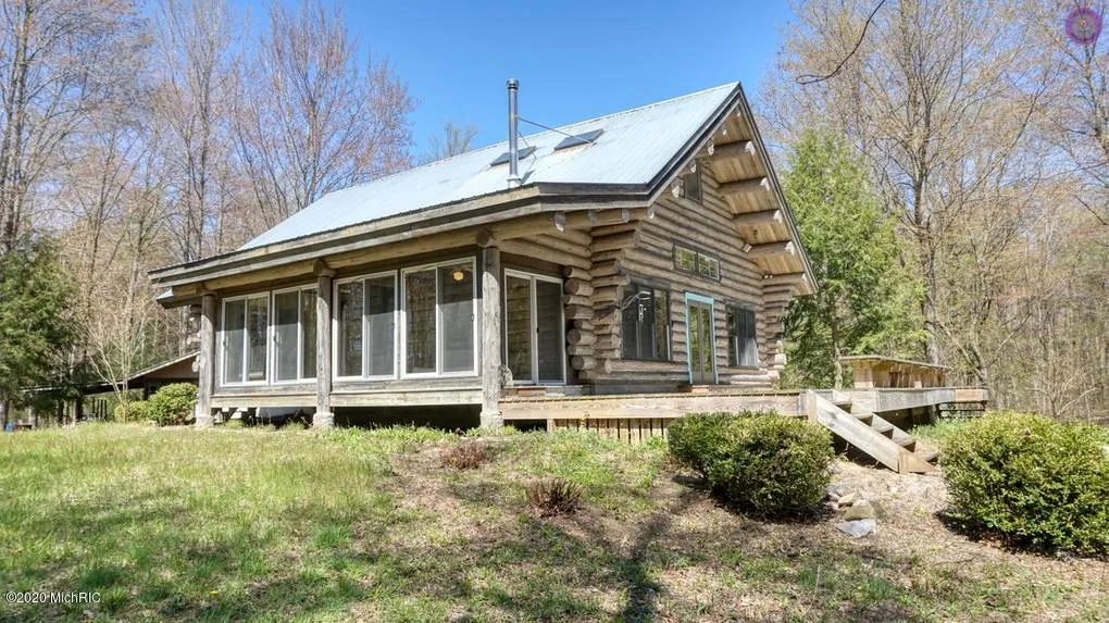 Enjoy the Kalamazoo Riverfront at your year round retreat on 20 Acres in Saugatuck Township. Soaring to 22 feet high the log beams create open living spaces with large loft for entertaining. Nature's beauty surrounds the homestead and can be enjoyed from the large sun room, huge deck and covered front porch. 1st Floor Master Suite includes custom touches with claw foot tub, oversized walk-in shower plus dressing room/closet with laundry. Artistry and creative touches in cabinetry, hardware, and finishes. Lower Level high ceilings, daylight windows, full bath provides customized living options. Space could be 2 more bedrooms, home office or media room. Large custom Log Home with 2 out buildings. Add a pole barn for toys. Close to the Public Boat Launch, Douglas, Saugatuck and Lake Michigan!