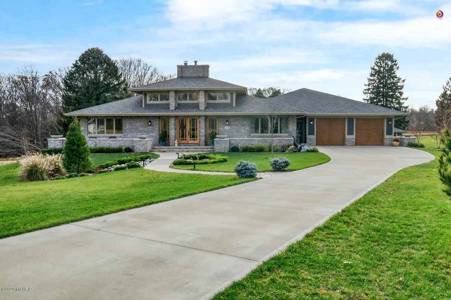 Custom Built in 2017 Modern Prairie Style Home. Golf View Drive offers a hidden sanctuary of estate custom homes tucked back among nature and wildlife, gorgeous view of ravines, grassy prairies, walking path to Lakeshore Drive and Douglas Beach. Living Room with soaring ceilings of 16 ft, massive see through brick fireplace and West wall of multiple windows facing the courtyard and fountain. Formal Dining with beautiful Crystal Chandelier. Wet Bar with wine frig. Coffered Ceiling & built in bookcase in Den. Three Bedrooms, Full Bath, Mater Bedroom and Master Bath with Steam Shower and walk in closet on Main Flr. Kitchen fully equipped Kitchen Aid appliances, double door frig, 6 burner 48 double oven range, built in microwave and Jenn-Air coffee latte coffee maker. Massive isand with decadent light fixture will be the center of attention with family and guests. Hardwood Hickory floors, India Slate & tile floors on Main Level with 3,321 sq ft. Butlers pantry with private caterers entrance with dishwasher. Half Bath Solid Granite washbowl and base. Sun Room Cathedral wood ceilings, porcelain wood burner fully enclosed with Pella windows. Lower Level porcelain tile floors, log walls, stone wood burning fireplace, Bedroom full Bath, Bar with sink, range ,frig & granite counters. Walk-out lower lever to Cabana with 10 person hot tub cathedral ceilings and leaded glass windows. Possible 5 car tandem car garage. This home is unique, prestigious and impressive.