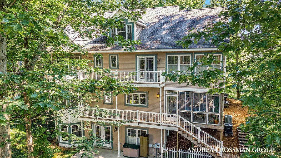 Delight in the private, wooded setting of this spacious cottage, located in a gated community in Macatawa, where you can live within walking distance of a private beach and Big Red Lighthouse. This 4-story getaway boats 7 bedrooms (with potential for an 8th), 3.5 baths, roomy kitchen, 3 dining areas, a lovely deck overlooking Lake Macatawa and the harbor with plenty of space to make family memories. The 325 square foot, glassed, 3 season room off the kitchen and living area, is like a tree house and provides plenty of room for dining or just plain chilling out! Included is a golf cart used during the summer, which has access to 6 parking spaces. Off season, you can drive your car right to your front door!