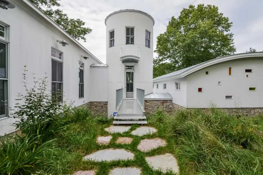 New Farm, a unique contemporary home that is located on nearly 10 private acres on the Kalamazoo River in Saugatuck Township. This iconic farmhouse is perched on a ridge with views of the private pond, wetlands, rough grasses, lots of wildlife, Mount Baldhead in the distance and spectacular sunsets. With its extensive use of glass, metal and stone, the sleek exterior and ultra modern, ultra cool interior offer a beautiful contrast to the natural surroundings. Landscape designed to be natural and organic. The large outbuilding has been transformed into a 2 unit carriage house and includes ample storage. Splits available