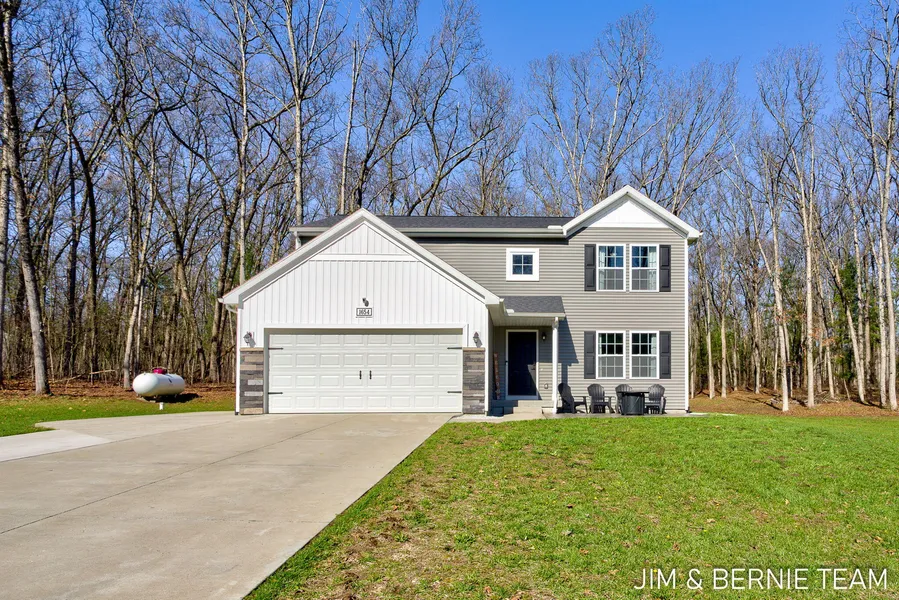 Welcome to this beautiful 4-bedroom, 2.5-bathroom home located on Ryan Woods Ct. in Allegan. Nestled on a peaceful, wooded 2 acre lot, this property offers the perfect blend of privacy and convenience with easy access to M-40. With both a front patio and a large back patio & firepit area, enjoying the outdoors is easy! Step inside to discover an inviting open-concept main floor, perfect for entertaining. The spacious living area flows seamlessly into the kitchen and dining areas, creating a bright and airy atmosphere. Enjoy the added convenience of main floor laundry, guest half bath and a 2-car attached heated garage that offers plenty of storage, and additional parking pad next to the house. Upstairs provides the generous primary bedroom with a private attached bathroom, and large walk-in closet. Three additional bedrooms and the second full bathroom complete the upper level. In the lo...
