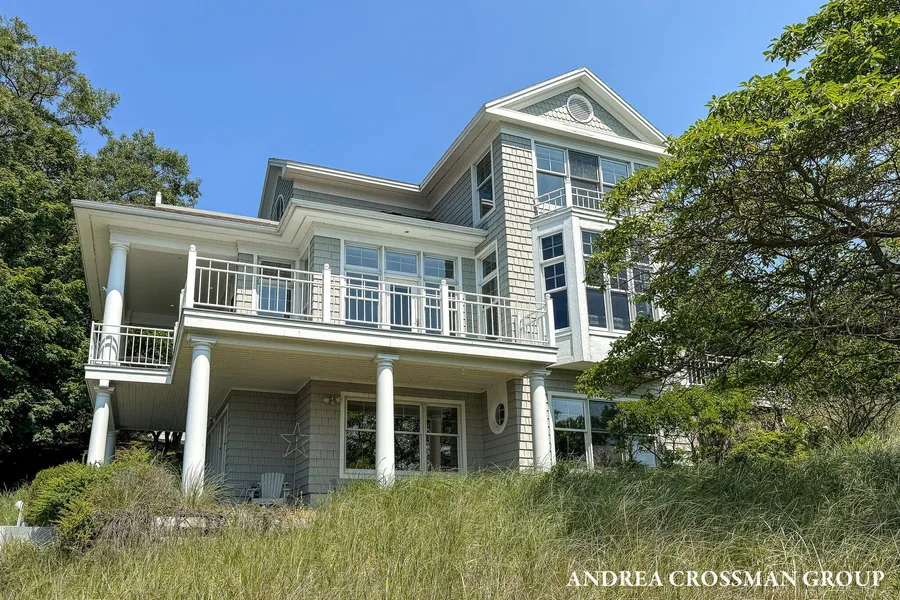 Welcome to the River House, where spectacular views of the Kalamazoo River define this exceptional waterfront home, just moments from Mt. Baldhead, Oval Beach, and the Saugatuck Yacht Club. Thoughtfully designed to maximize its setting, the home features a private dock with boat lift, a spacious wraparound deck for outdoor living, and walls of windows that fill the interior with natural light and superb views. The open-concept main level includes a vaulted great room, living room with fireplace, dining area, and kitchen, all oriented to showcase river and boating vistas. The main-floor primary suite offers a walk-in closet, en-suite bath, and a private riverside deck. Upstairs are two additional bedrooms and a full bath, including one with river views. The walkout lower level is equally impressive, with a large family room with expansive water views and patio. A fourth bedroom overlookin...