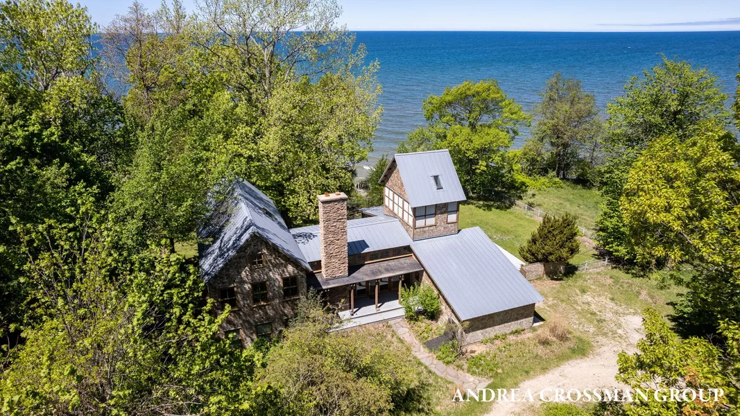 Enjoy private access to your own stretch of sandy shoreline in this private Lake Michigan retreat located on almost 6 acres and an impressive 249 ft of beach frontage. This spacious, 7-bedroom, 5.5-bath, Lake Michigan home offers the perfect blend of natural beauty and inviting comfort. The main living area welcomes you with an open-concept kitchen, dining, and gathering space featuring vaulted ceilings and beautiful wood beam accents. The main level also includes a lakeside primary suite, a guest ensuite, a half bath, and a screened porch perfect for lake and sunset views. Upstairs, you'll find two additional guest ensuites, plus a bonus loft area and charming crow's nest. The finished lower level adds more living space, with three bedrooms, a full bath, recreation room, and laundry. Potential for up to four splits.