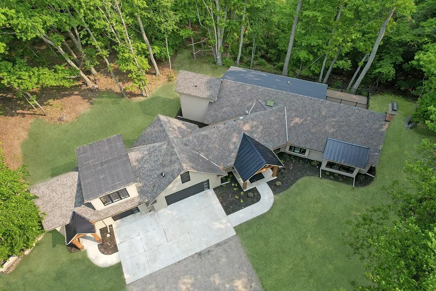 Discover your private sanctuary on this 15 acre parcel, ideally located within the vibrant City of Saugatuck. The collaboration of Tammy Kerr and Patsy Burnham Designs created an elegant atmosphere for this distinctive home located 1 block from Lake Michigan. A long driveway leads to the home, providing privacy and a sense of retreat from the outside world. The land potential has endless possibilities, including creating a PUD, splitting lots off, or donating acreage for a conservancy for potential tax benefits. All finishes have been selected by professional interior designers providing cohesive and sophisticated aesthetics. Main house Features include 3 spacious bedrooms including a main level master suite with breath taking view of the 10 acres of rolling dunes and lush forest. Open concept design allows you to enjoy culinary delights in the gourmet kitchen, equipped with custom cabinets, high-end countertops, top-of-the-line appliances, and a large island that comfortably seats 6-8. The expansive dining room and built-in bar area are perfect for entertaining, while the four-season room offers a peaceful retreat to enjoy the surrounding nature. A charming guest quarter above the garage includes a bedroom, living room, bath, and private deck ideal for visitors. complete with a secret stairway to the main home if needed. The landing library nook at the top of the stairs provides a cozy spot to unwind. Experience the unique blend of a private sanctuary filled with wildlife, all within walking distance to Lake Michigan with public access and the quaint communities of Saugatuck and Douglas, brimming with delightful shops and exceptional dining options. Don't miss this rare opportunity to own a piece of paradise in Saugatuck! Includes 3 parcels, 57-008-007-00, 57-008-009-10, 57-008-011-00