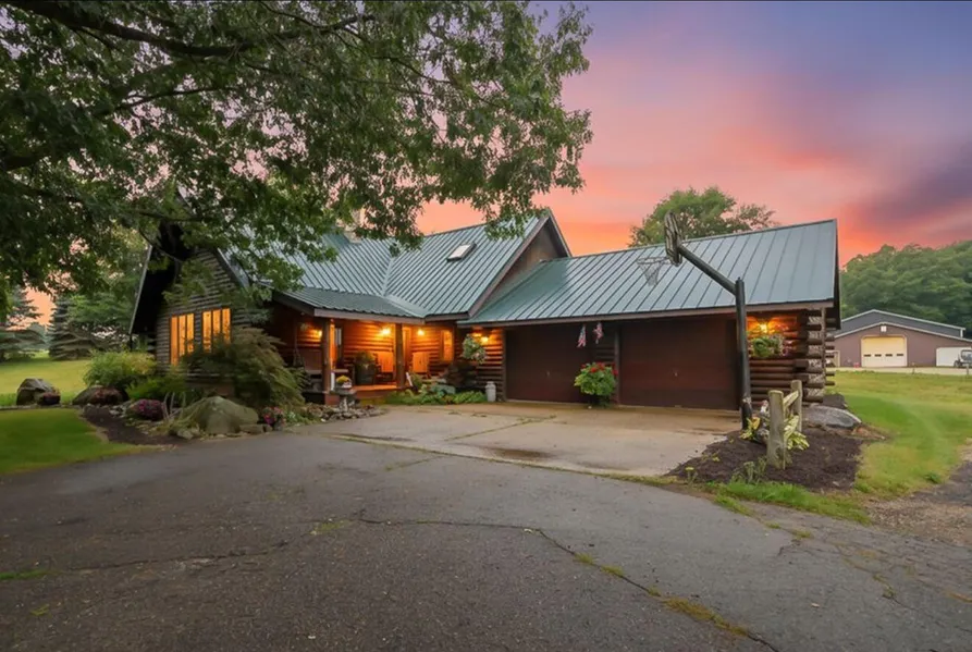 This property is a perfect lifestyle! Imagine living in a Red Pine log cabin where mornings are spent overlooking the ponds, evenings around a crackling fire, and weekends filled with trail walks or watching wildlife right from your deck. A peaceful retreat where your passions and hobbies all have room to grow In addition to this beautifully maintained 3-bed, 2-bath log home, it also includes 10 acres of farmable hay, making it ideal for agricultural use or income-producing potential. The horse pasture features a natural running stream, providing reliable water source for animals year-round. The 60x80 pole barn is fully operational. This space includes an office with a built-in propane fireplace, bathroom, shared space, on top of the four stalls of workspace. Already perfectly equipped for equipment storage, trades, small business operations, or hobby farming Outdoor enthusiasts will app...
